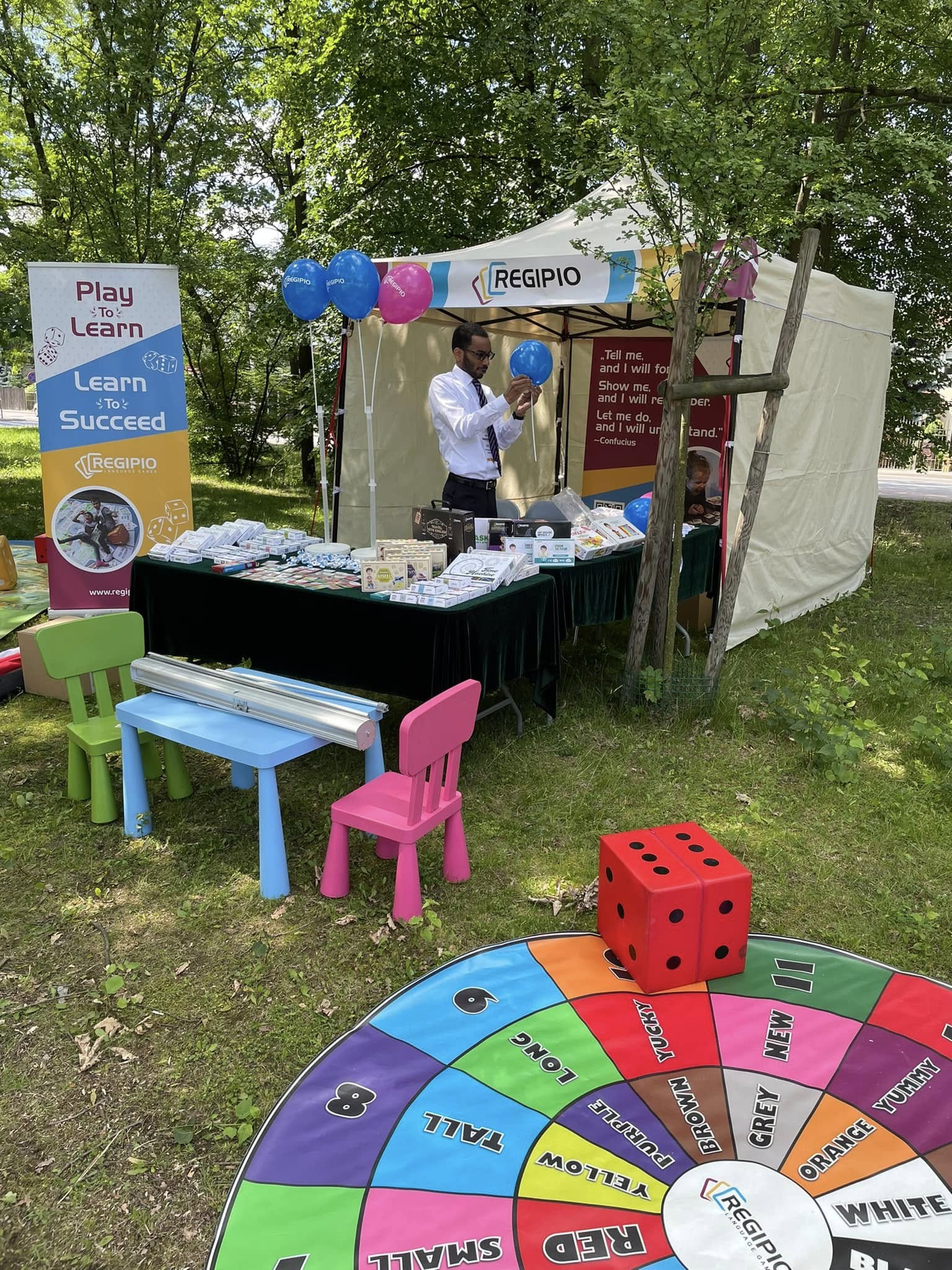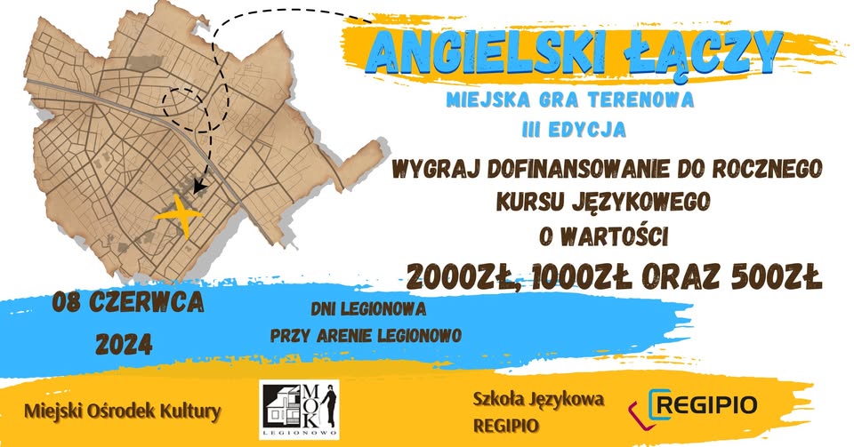 Podczas tegorocznych Dni Legionowa po raz trzeci zorganizowaliśmy naszą Grę Terenową „Angielski łączy!” – i po raz kolejny było energicznie, zabawnie i bardzo językowo! Uczestnicy, którzy zgłosili się do naszego stoiska REGIPIO, ruszyli na pełną wyzwań trasę, by zmierzyć się z zadaniami językowymi – a przy okazji zawalczyć o atrakcyjne nagrody, w tym zniżki na kursy językowe.