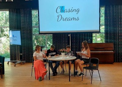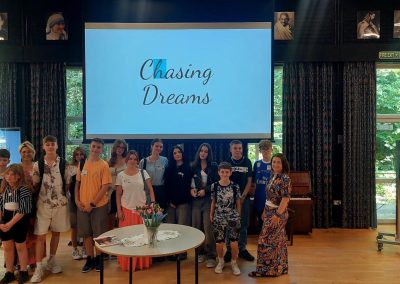 W programie znalazły się wizyty w kultowych miejscach, takich jak Buckingham Palace, Big Ben, London Eye, Warner Bros Studio Harry Potter czy Madame Tussauds. Nasi uczestnicy nie tylko doskonalili język podczas codziennych zadań i gier, ale też zmierzyli się z wyjątkowym wyzwaniem – wystawili spektakl „Chasing Dreams” w języku angielskim dla swoich brytyjskich rówieśników w St Thomas More Secondary & 6th Form School w Bedford. Przedstawienie spotkało się z ogromnym entuzjazmem i zostało nagrodzone burzą oklasków!