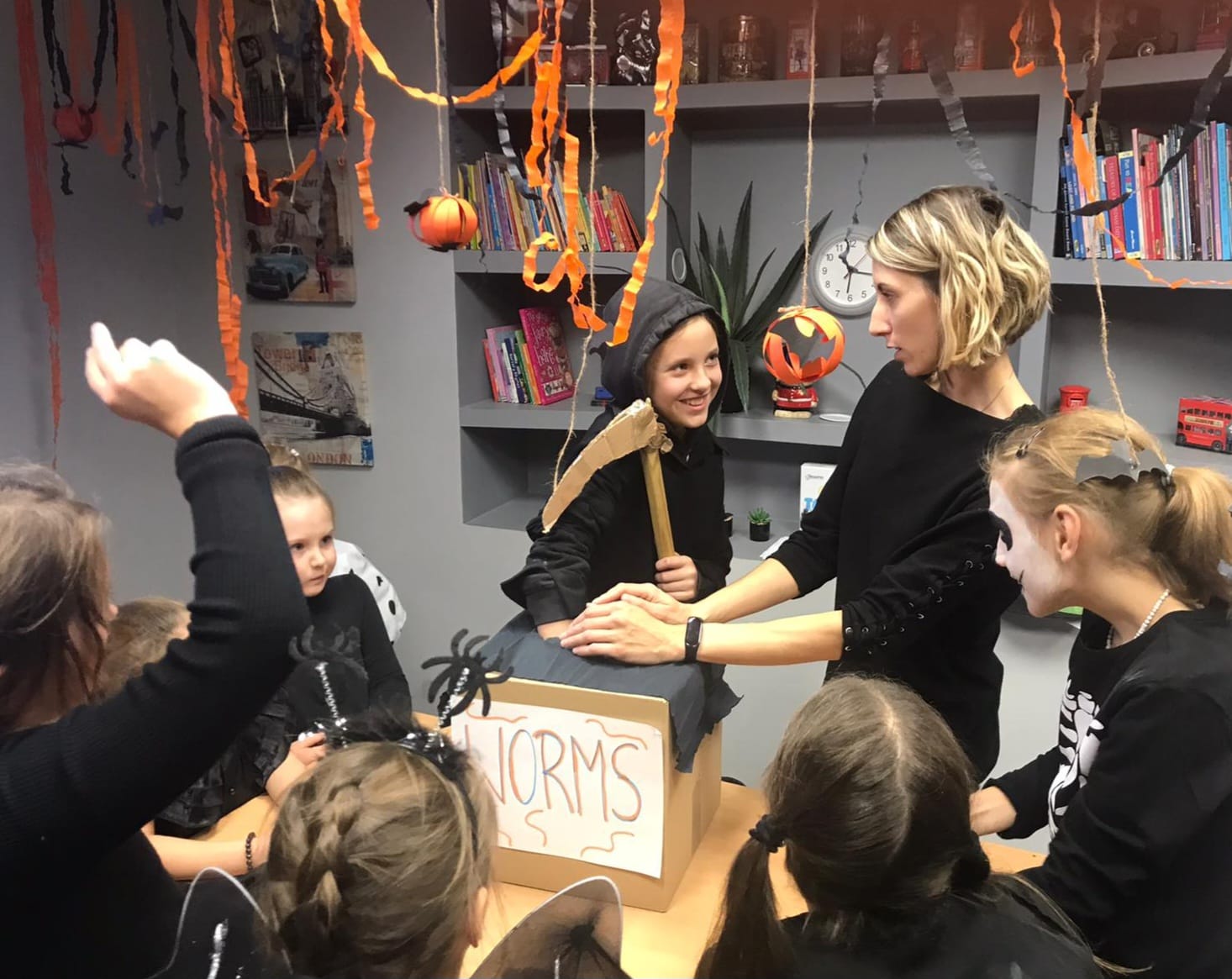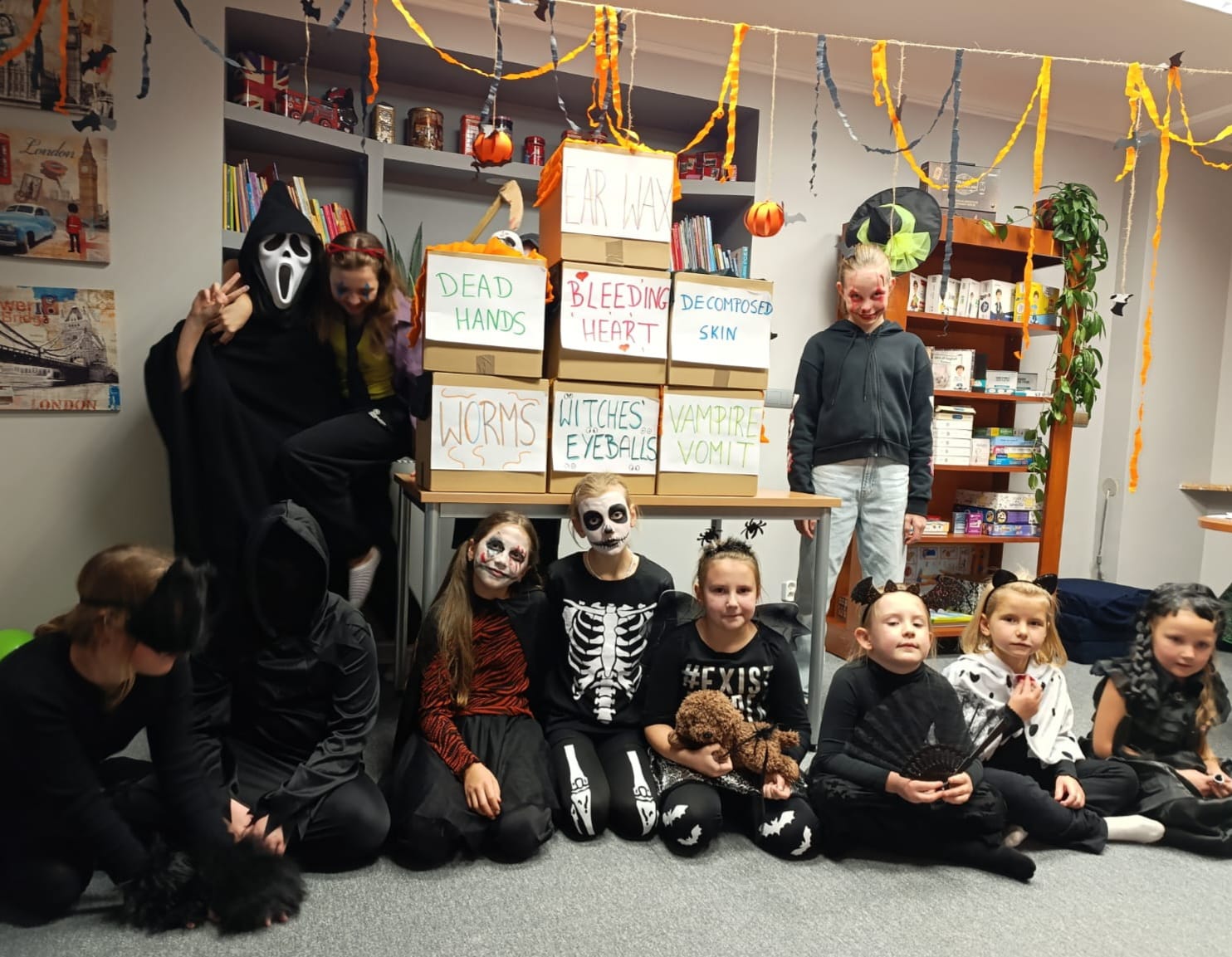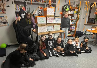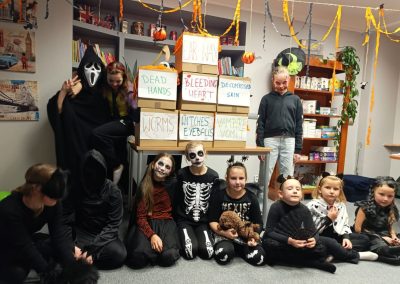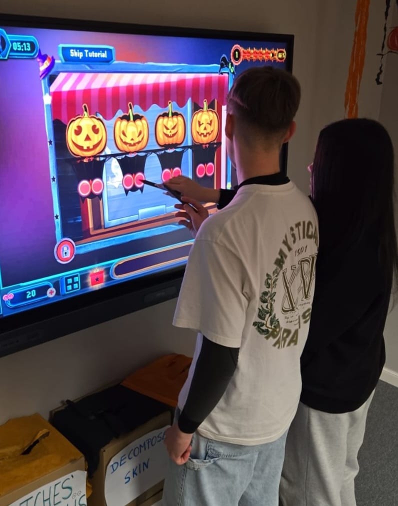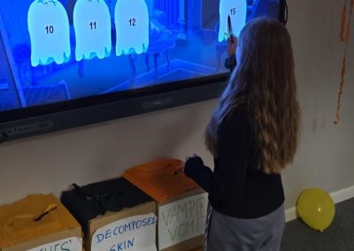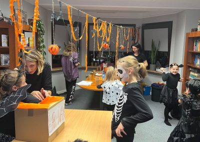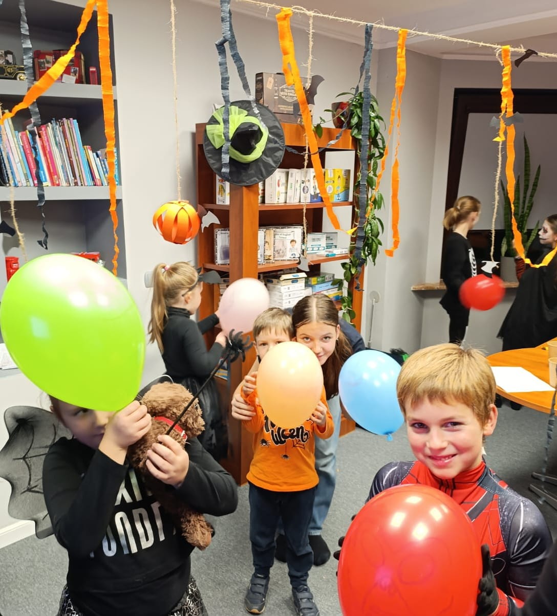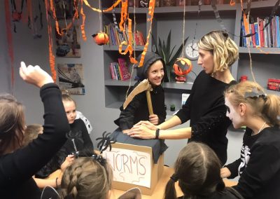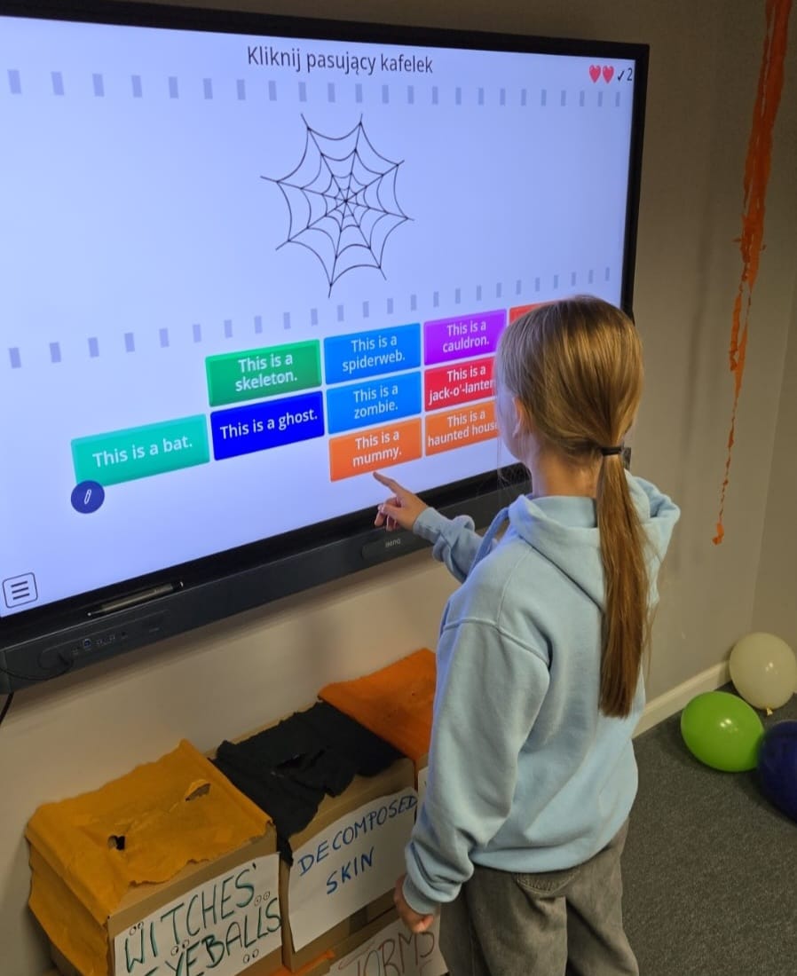 Uczniowie rozwiązywali zagadki, grali w upiornie ciekawe gry językowe i poznawali halloweenowe słownictwo w praktyce. Było trochę magii, trochę psikusów – i dużo naturalnej komunikacji po angielsku.