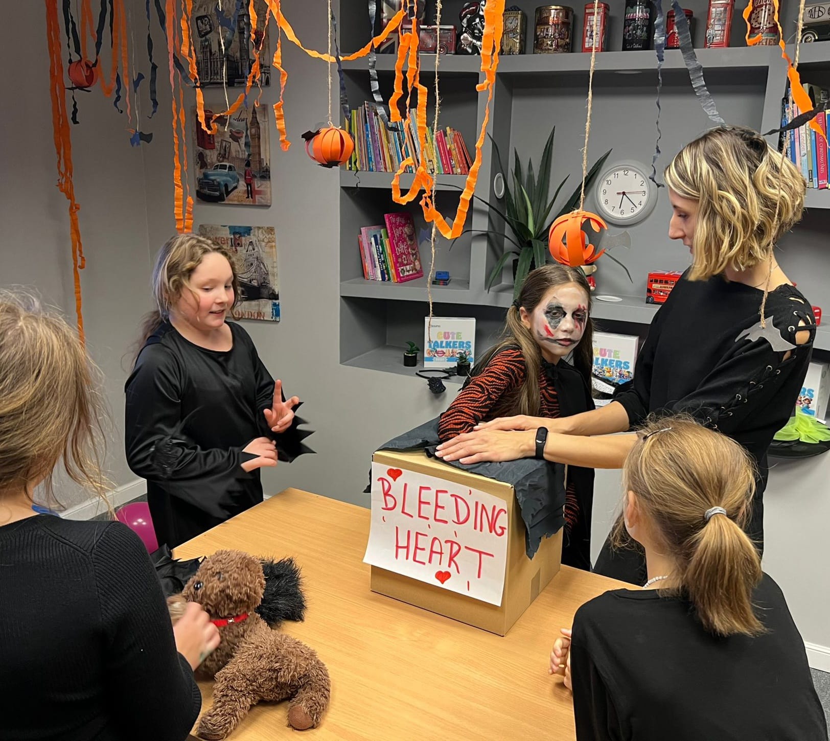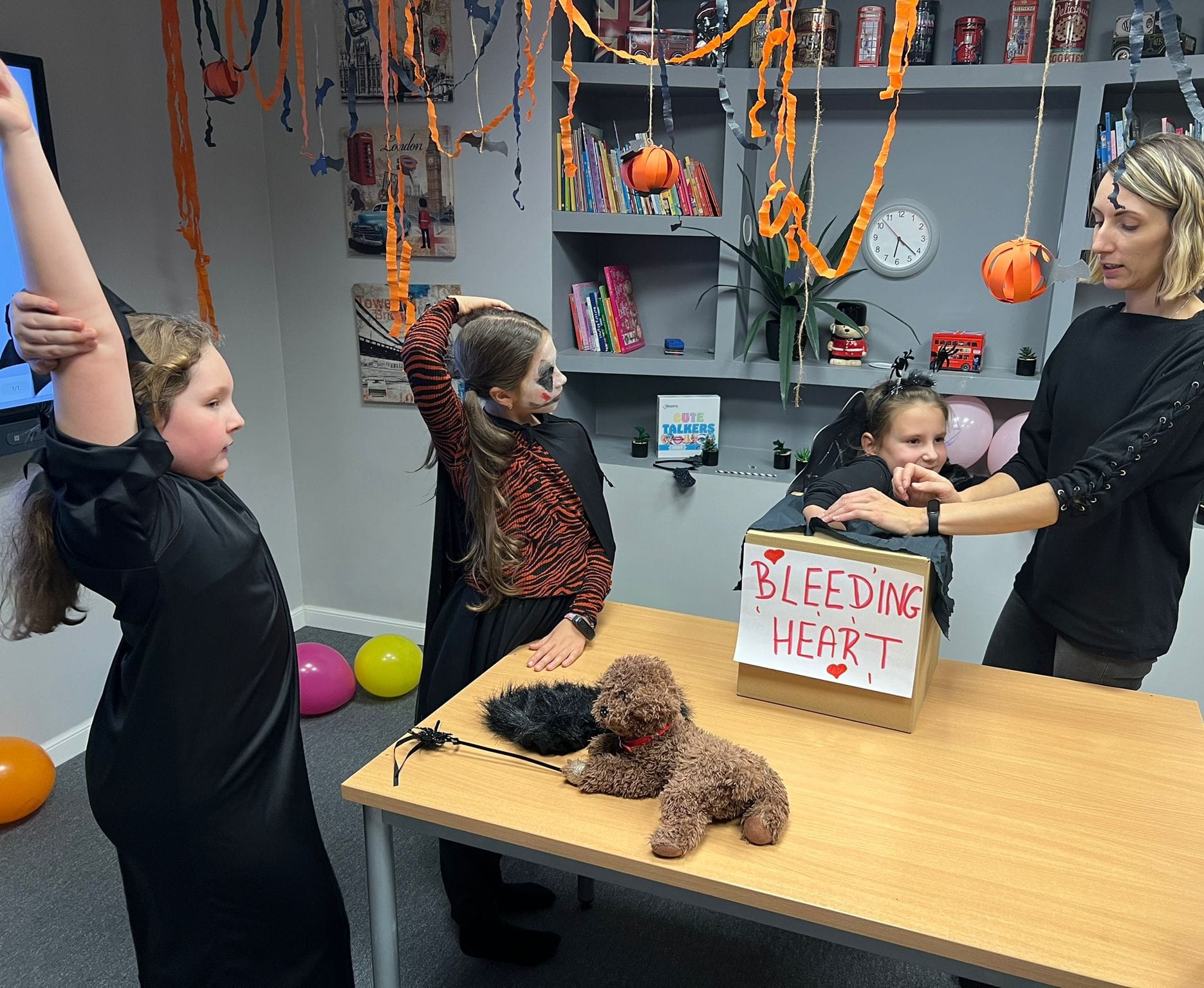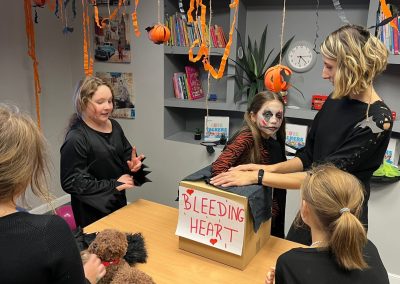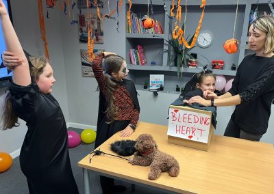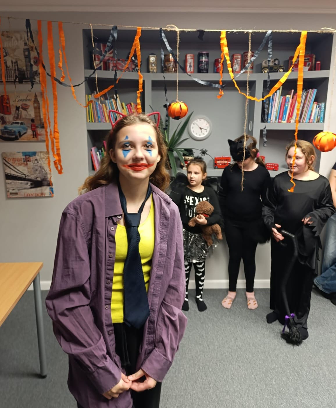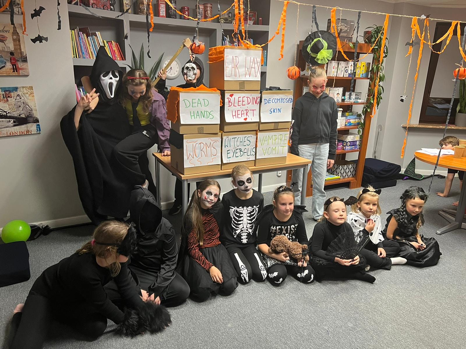 Uczniowie rozwiązywali zagadki, grali w upiornie ciekawe gry językowe i poznawali halloweenowe słownictwo w praktyce. Było trochę magii, trochę psikusów – i dużo naturalnej komunikacji po angielsku.