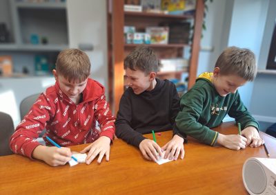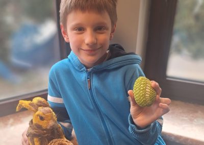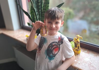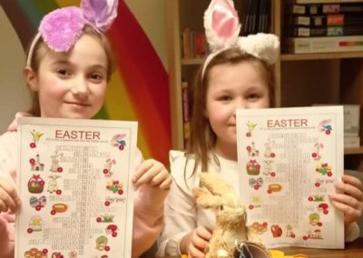 Były wielkanocne gry językowe, zabawy z jajkami (nie tylko pisankami!), zadania zespołowe i mnóstwo okazji do naturalnej komunikacji w języku angielskim. Jak zawsze – bez stresu, za to z uśmiechem i pełnym zaangażowaniem dzieci.