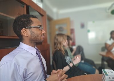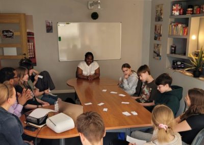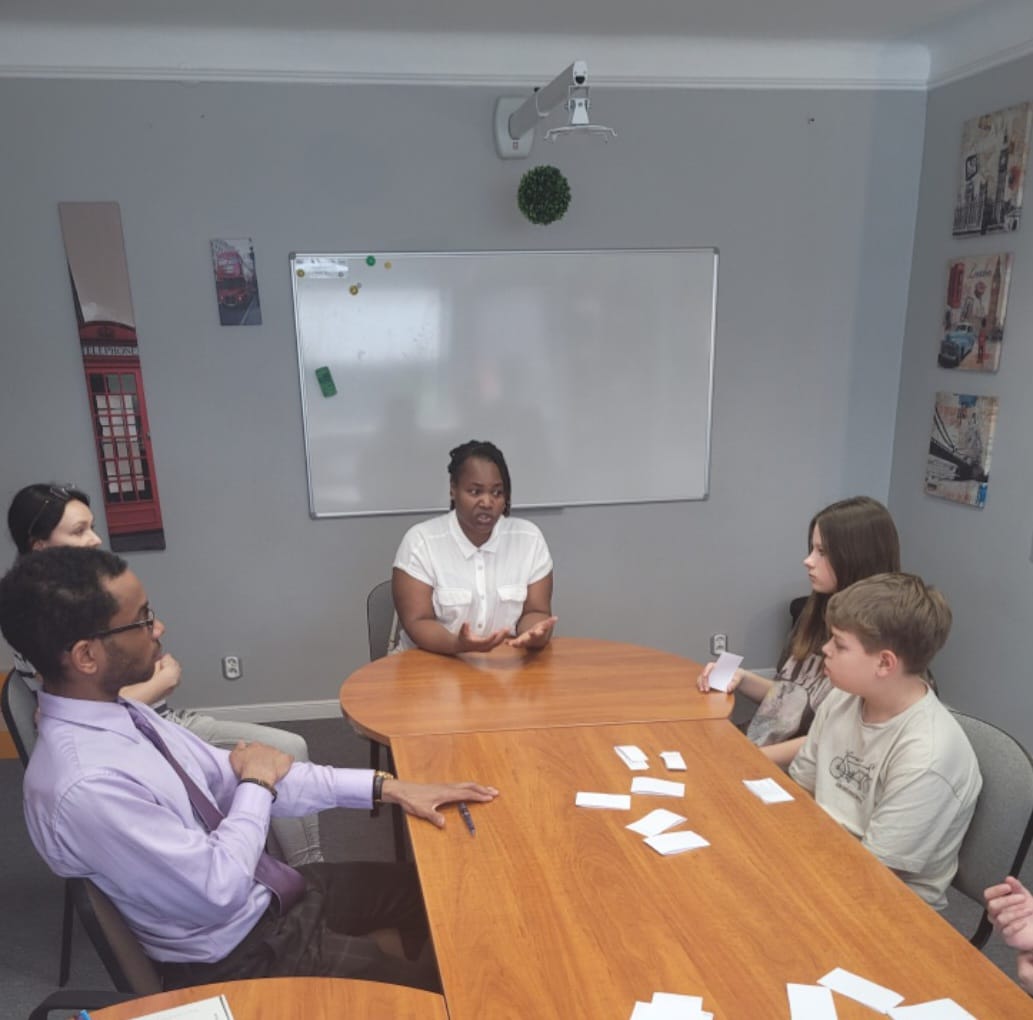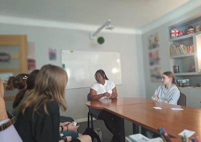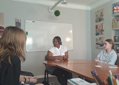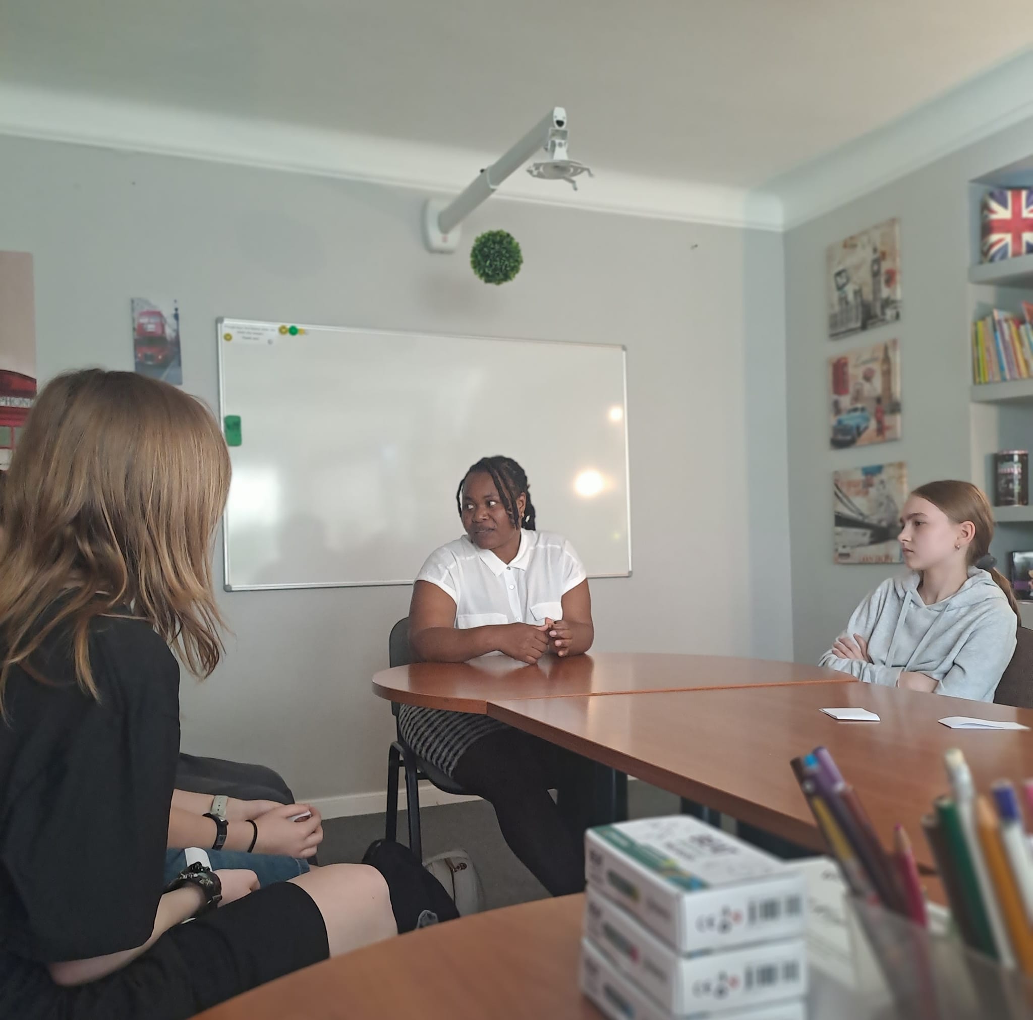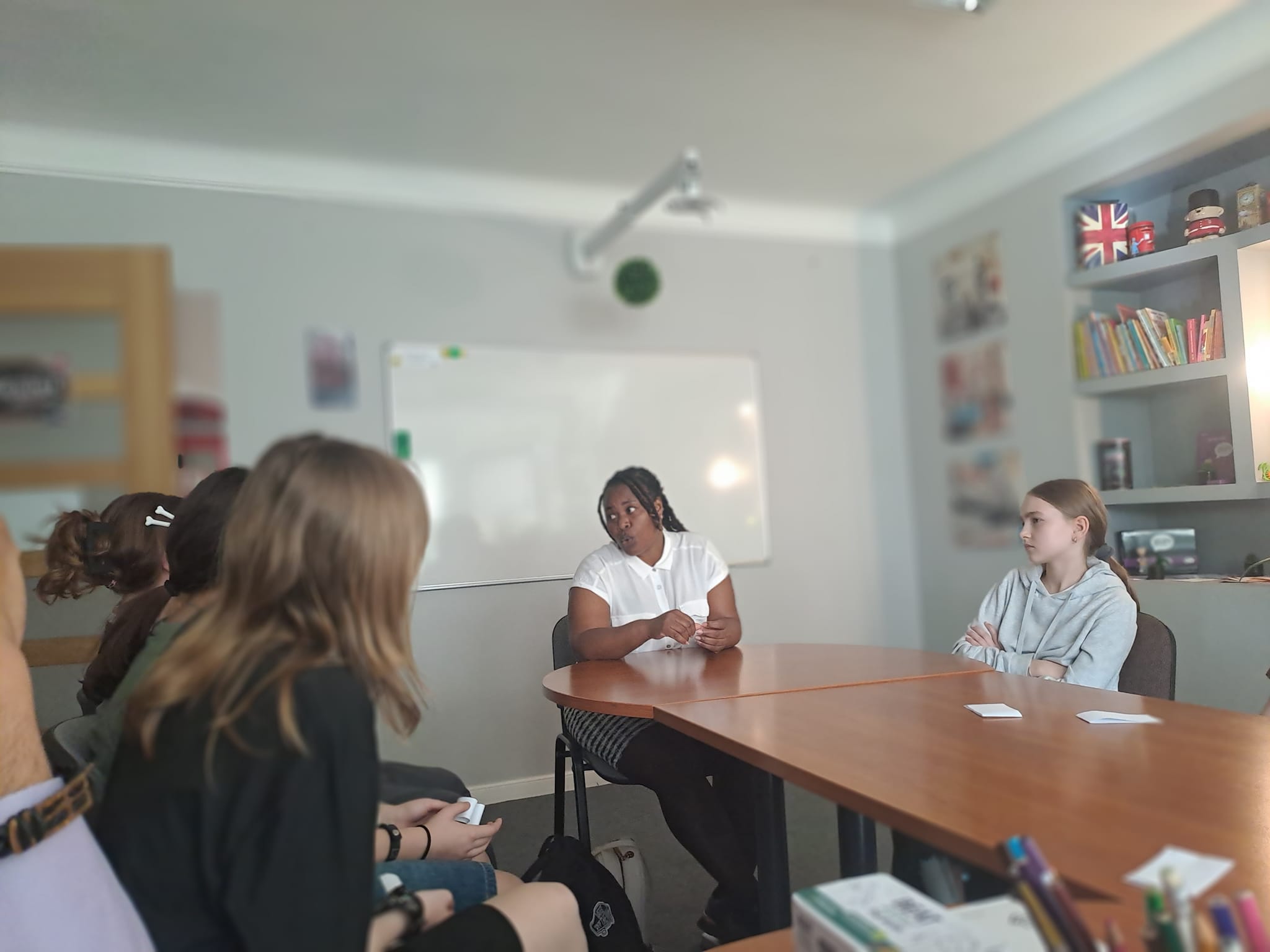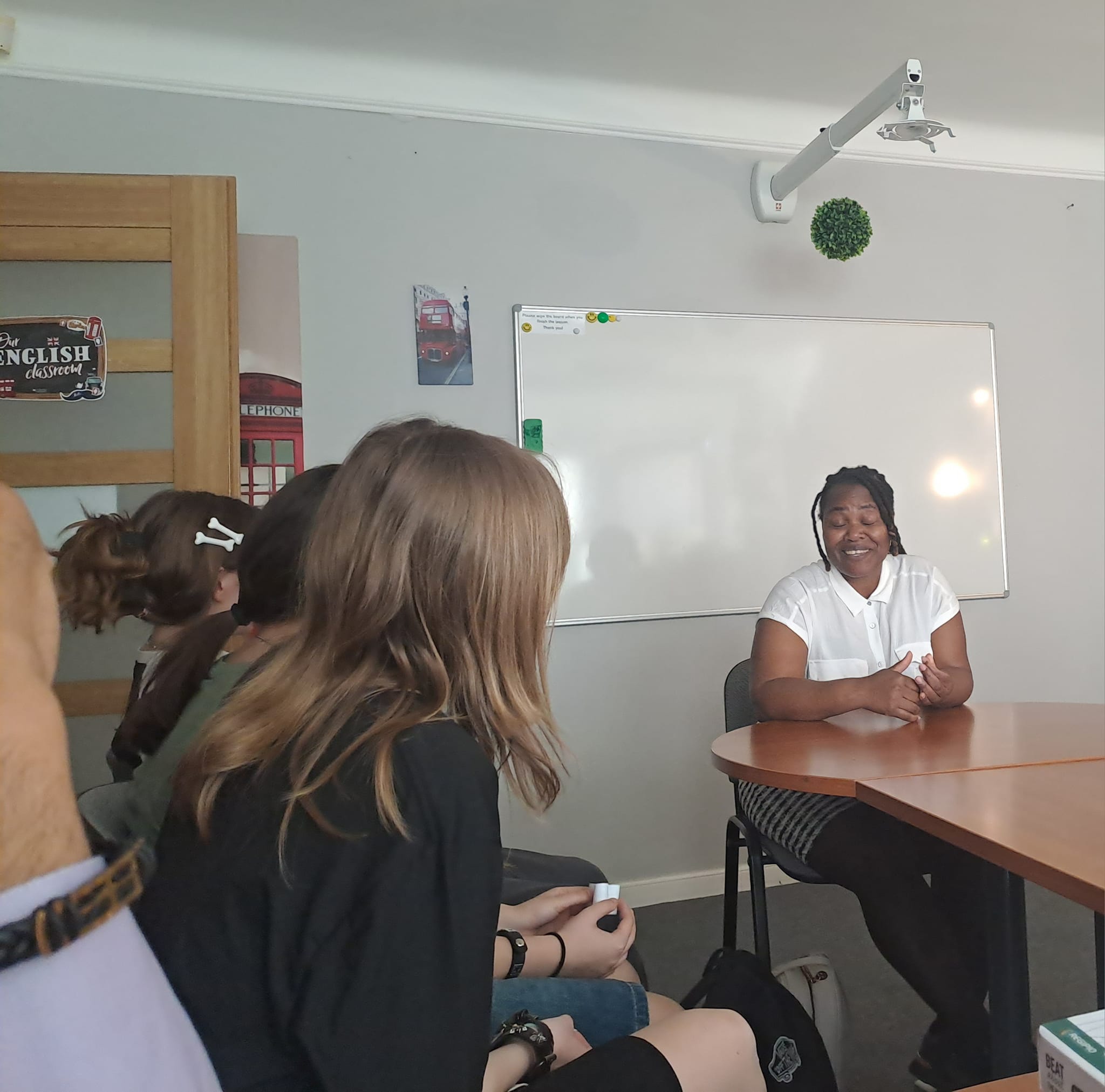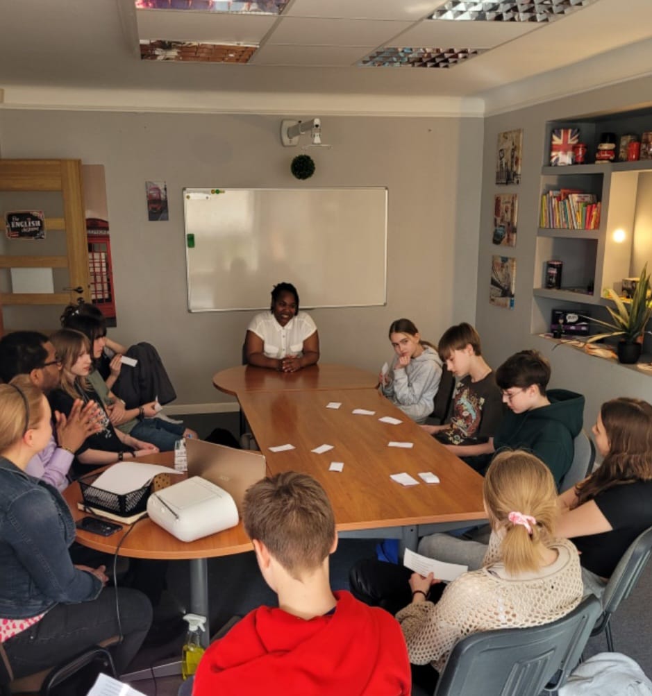 W naszej szkole odbyło się wyjątkowe wydarzenie – odwiedził nas gość z Zimbabwe! Nasi uczniowie (a także lektorzy!) mieli okazję zadać zarówno wcześniej przygotowane pytania, jak i te bardziej spontaniczne. Rozmowa dotyczyła różnic i podobieństw kulturowych, codziennego życia w różnych zakątkach świata i wielu innych tematów, które wzbudziły żywe zainteresowanie.